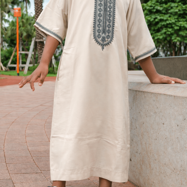 Cette gandoura beige est un parfait équilibre entre tradition et modernité. Ses broderies contrastées ajoutent une touche d’élégance à son design épuré. Légère et fluide, elle est conçue pour offrir un maximum de confort tout en s’adaptant aux températures de La Réunion. Idéale pour une prière, une sortie ou un événement spécial, cette gandoura s’adapte à toutes les occasions.